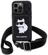 Kryt Karl Lagerfeld iPhone 14 Pro Max 6.7" hardcase black Crossbody Saffiano Monogram Choupette (KLHCP14XCSAKHPCK)